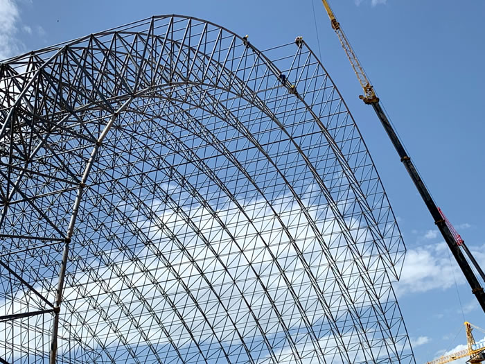 (2)网架加工前应对现场尺寸进行复测,确认无误后方可进行加工、安装;网架制作、运输、安装应遵守《空间网格结构技术规程》JGJ7-2010、《钢网架广汉螺栓球节点》JG/T 10-2009、《钢网架广汉螺栓球节点用高强度螺栓》 GB/T 16939-2016、《广汉钢结构广汉工程广汉施工规范》 GB50755-2012、《广汉钢结构广汉工程广汉施工质量验收标准》 GB50205-2020。